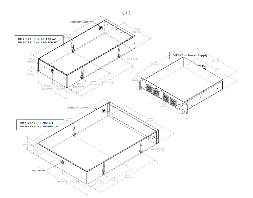 --纳秒绿光 527nm:两个激光头合计脉冲能量40mJ ~ 200mJ